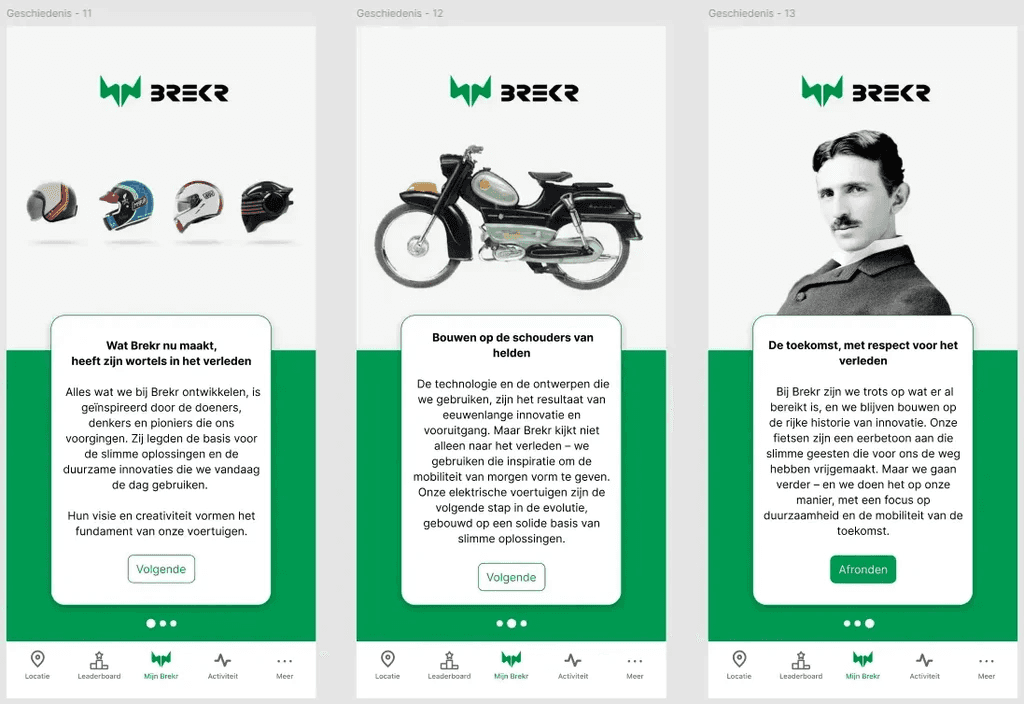 Het eindproduct is een mobiele app die gebruikers stap voor stap en op een interactieve manier helpt hun voertuig te begrijpen. De korte animaties en storytelling maken het leuk en persoonlijk, waardoor gebruikers zich echt verbonden voelen met Brekr. Nieuwe én ervaren rijders kunnen snel vinden wat ze zoeken, en voelen zich zelfverzekerd en onderdeel van een community.